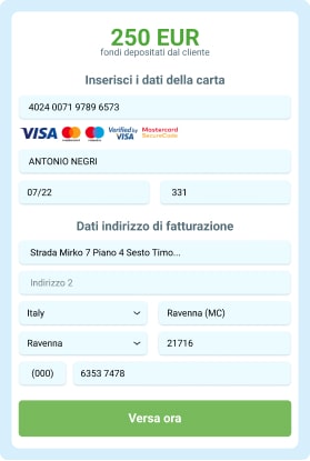 Fai un versamento iniziale (€2) sul tuo conto prima di iniziare a usare la piattaforma. Segui le istruzioni sullo schermo per completarlo.